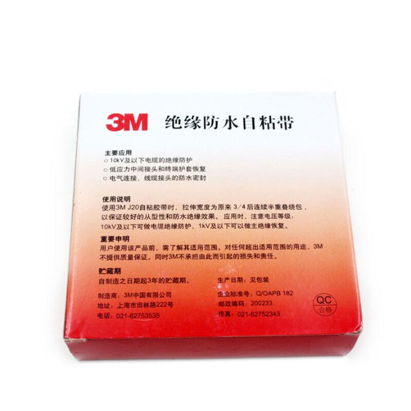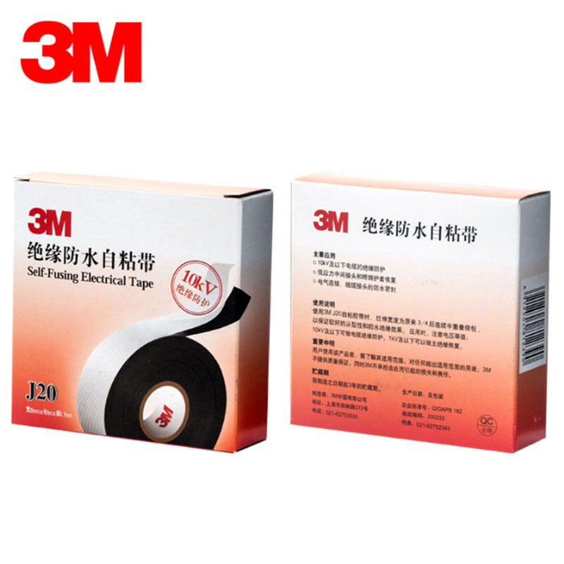 • 3M J20自粘橡胶绝缘胶带耐高温电工胶带防潮密封高压绝缘防水胶布宽度25毫米长度5米0.7毫米厚 单个装