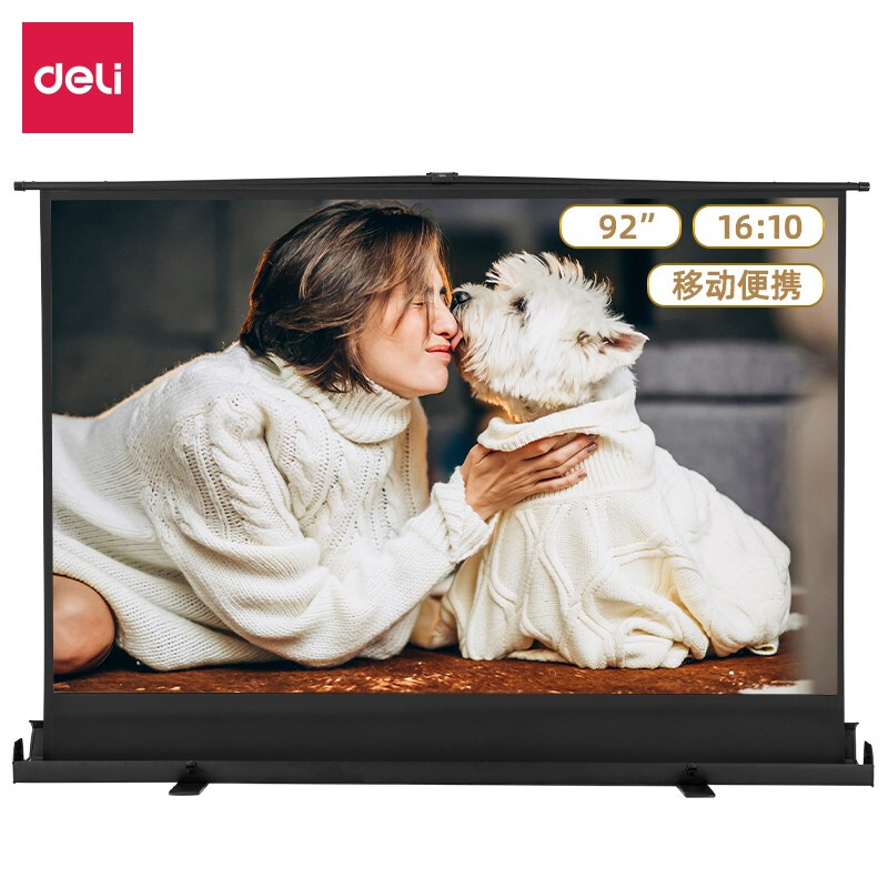 • 得力92英寸 16:10(兼容16:9)地拉式免安装投影幕布 简易家用可收缩投影机投影仪 地拉幕布50445