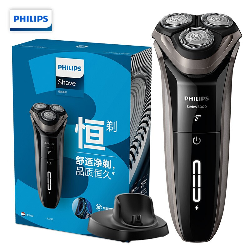 飞利浦(PHILIPS)男士电动剃须刀干湿双剃刮胡刀3000系列升级款S3203/08(一键加速)