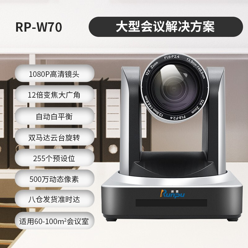 - 润普 RP-W70大型视频会议室解决方案(润普会议摄像头RP-HU12+润普无线全向麦克风RP-N70W)适用60-100平米