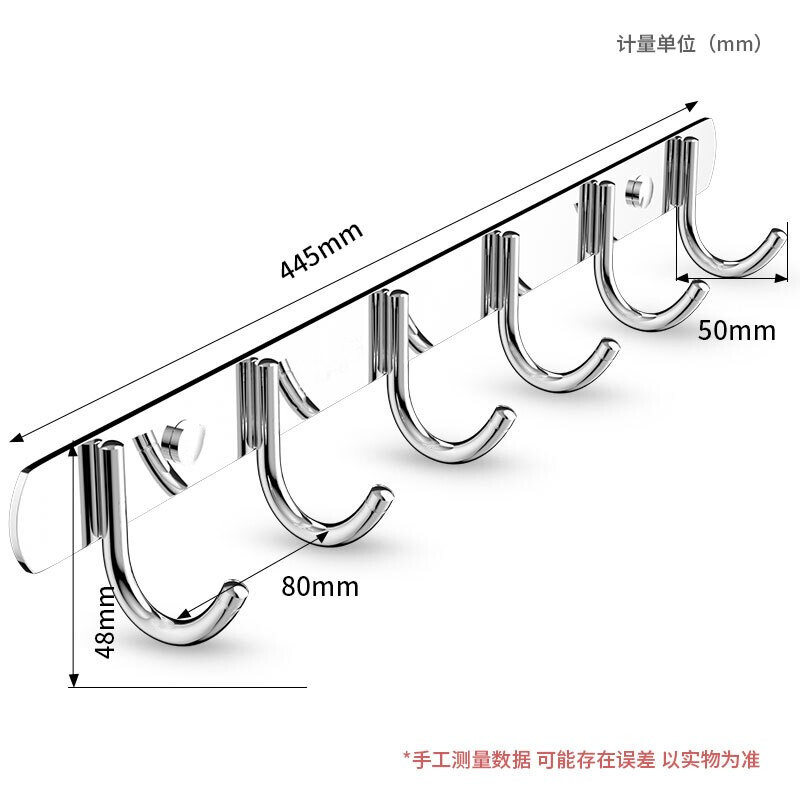 • 梦庭 304不锈钢挂钩浴室免打孔挂衣钩卫生间强力门后衣服挂排钩厨房无痕挂衣架毛巾粘钩贴 6钩