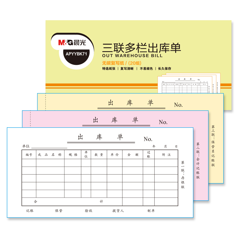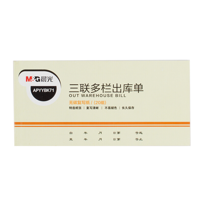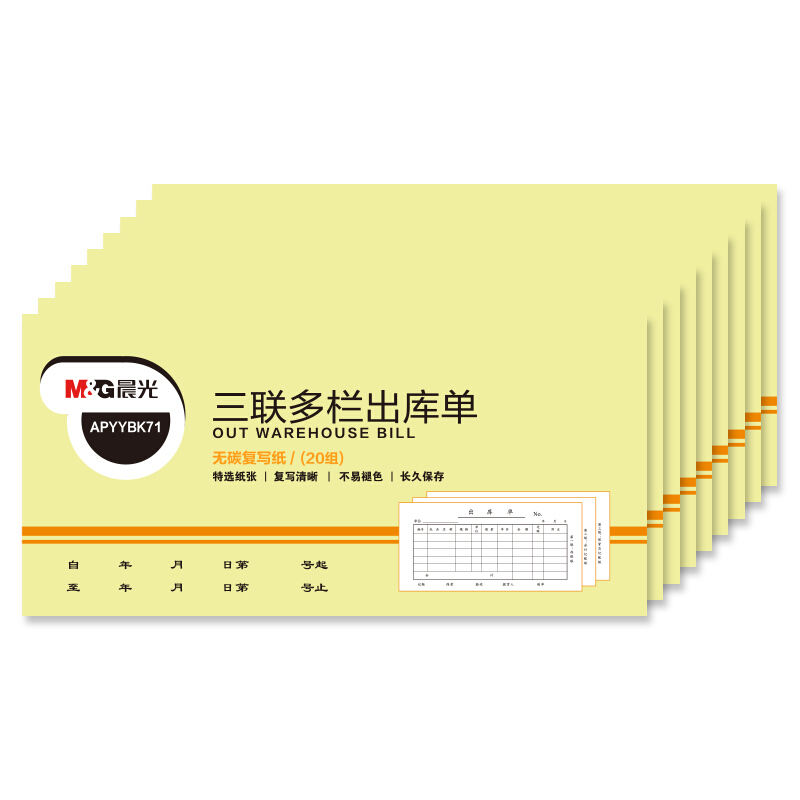 • 晨光APYYBK71 三联多栏出库单无碳复写纸 财务手写单 办公用品 10本装