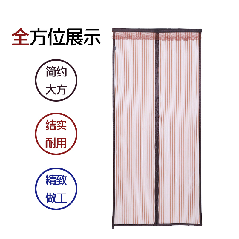 • 防蚊门帘夏日静音磁性加密软纱门沙窗纱网纱窗蚊子自粘型可拆卸 条纹咖啡色90X200cm
