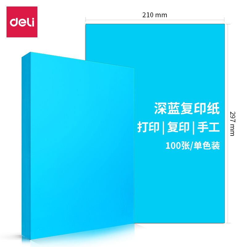 得力(deli)A4深蓝色复印纸 彩色打印纸 儿童手工折纸彩纸 80g卡纸 100张/包 7758