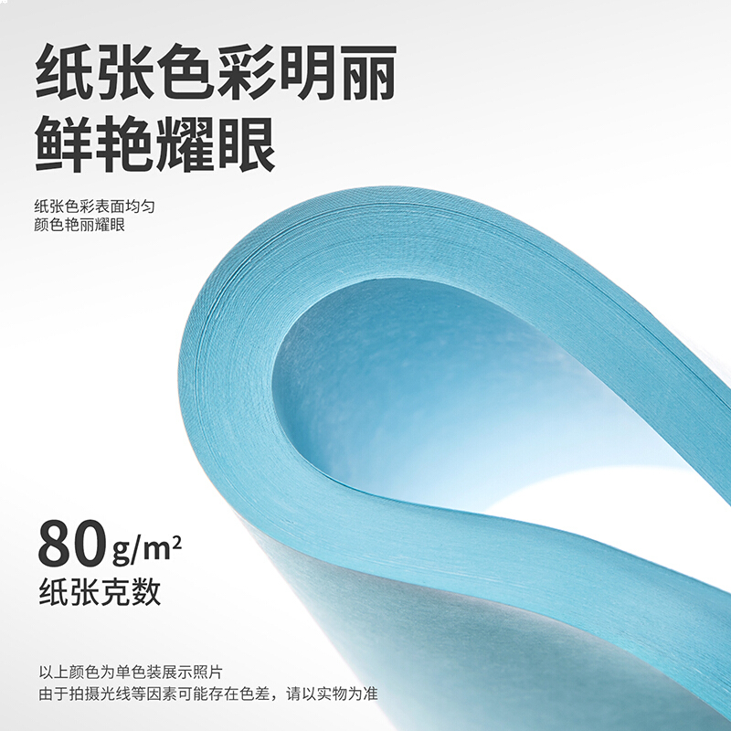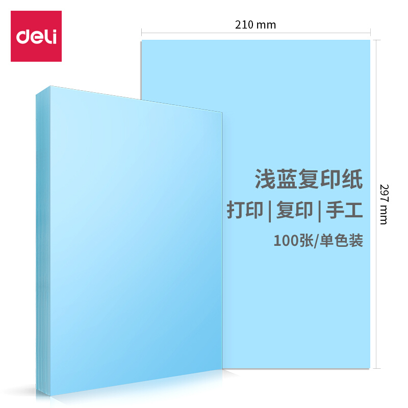 • 得力A4 浅蓝色复印纸 彩色打印纸 彩纸 80g卡纸 100张/包 7757
