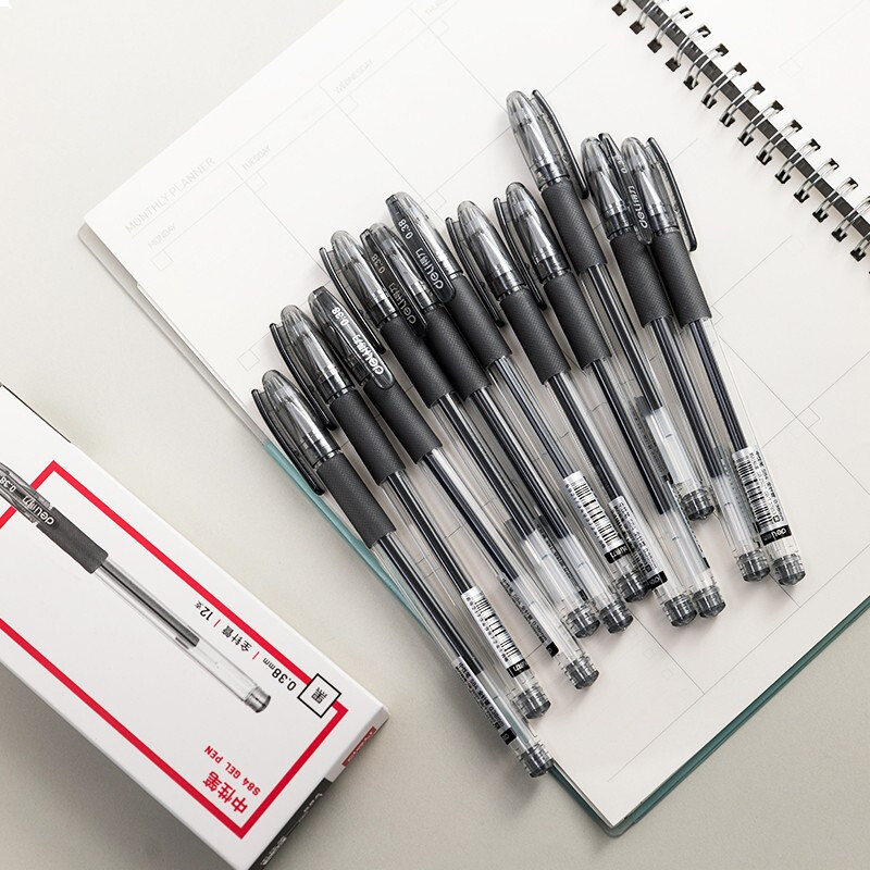 得力全针管中性笔0.38mm办公黑笔签字笔商务办书写顺畅透明简约 黑色/12支
