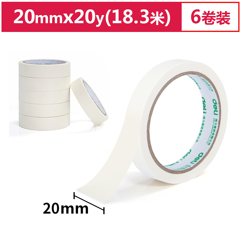 • 得力30667 美纹纸胶带/装修遮蔽带/无痕纸/贴膜 20mm*20y*145um 6卷装
