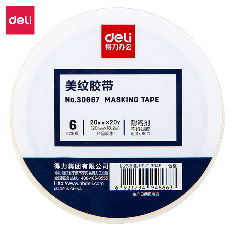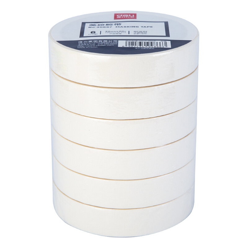 得力30667 美纹纸胶带/装修遮蔽带/无痕纸/贴膜 20mm*20y*145um 6卷装