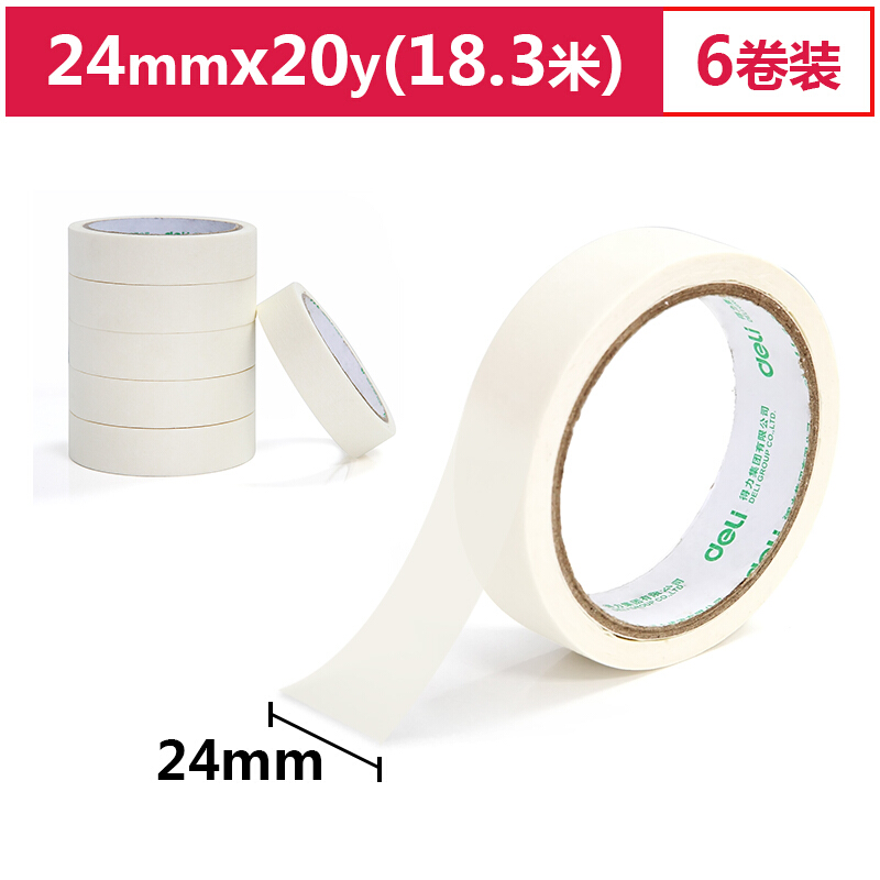 • 得力30670 美纹纸胶带/装修遮蔽带/无痕纸/贴膜 24mm*20y*145um(18.3m/卷) 6卷袋装