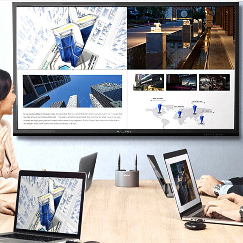 - MAXHUB会议平板SM98CA 视频会议平板电视一体机(含音视频集成套装(WAM42*2,W4M*7,W2H*1)+i5OPS+传屏器+支架+智能笔)