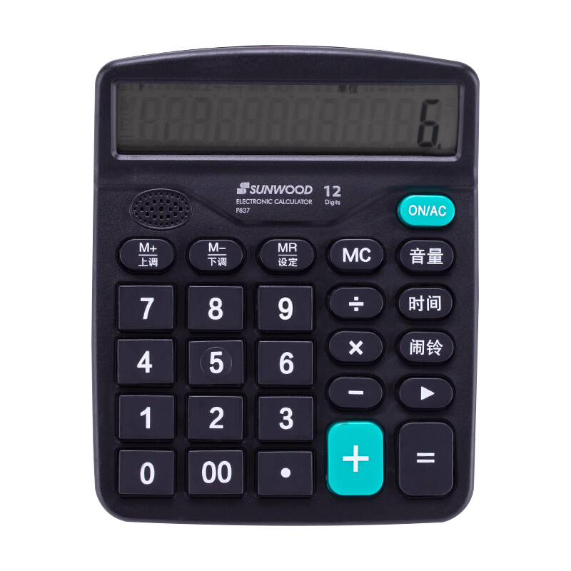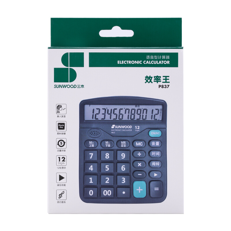 三木(SUNWOOD)效率王系列 双电源12位大屏幕语音桌面计算器 黑色 P837