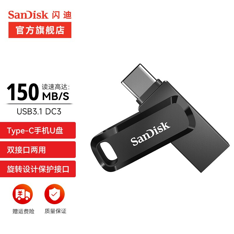 • 闪迪(SanDisk) U盘商务办公U盘USB3.1Type-C手机高速读写双接口手机电脑两用优盘 256G