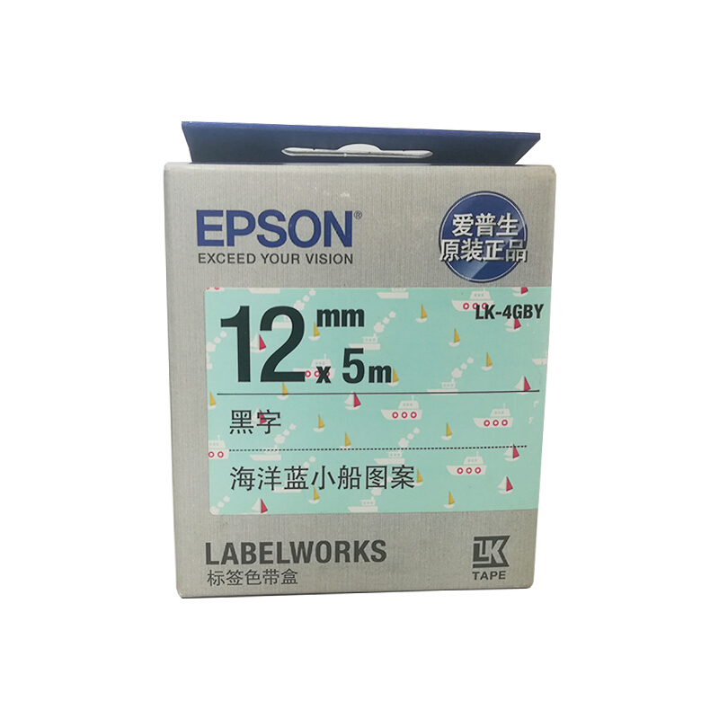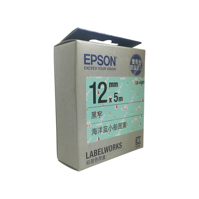 爱普生(EPSON)LK-4GBY 标签机色带 12mm 海洋蓝小船底 (LW-K400L/LW-600P/LW-C410)