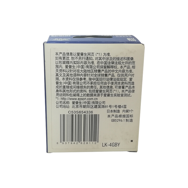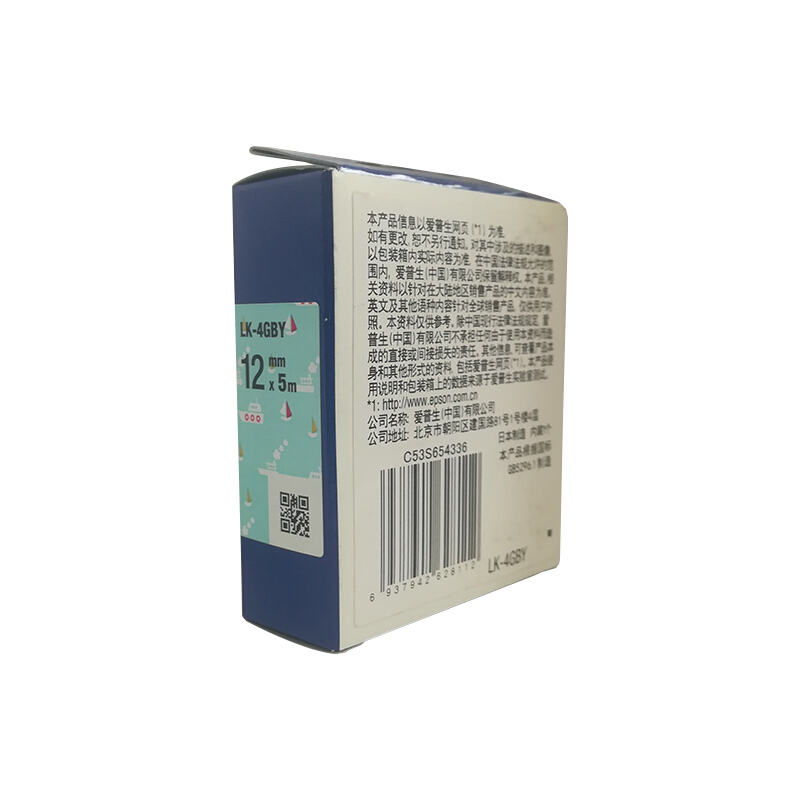 • 爱普生 LK-4GBY 标签机色带 12mm 海洋蓝小船底 (LW-K400L/LW-600P/LW-C410)