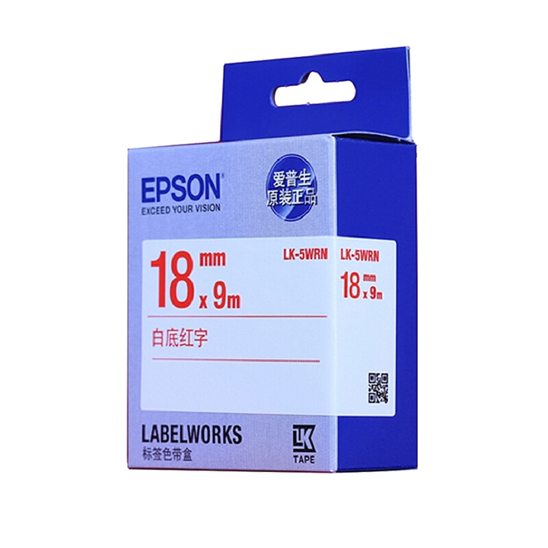 爱普生(EPSON)LK-5WRN标签机色带 18mm 红字白底 (LW-K400L/LW-600P/LW-C410)