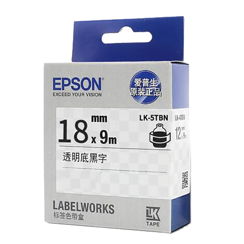 - 爱普生 LK-5TBN 标签机色带 18mm 透明底黑字 (LW-K400L/LW-600P/LW-700/LW-1000P/LW-Z700/LW-Z900)
