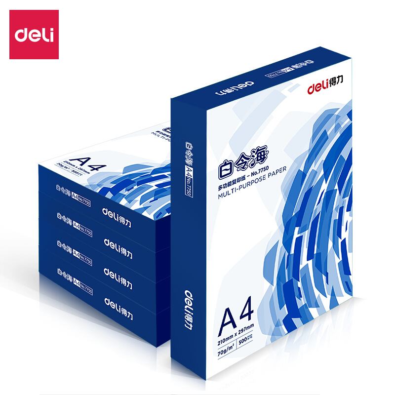• 得力 白令海5包装70gA4复印纸 500张/包 整箱2500张