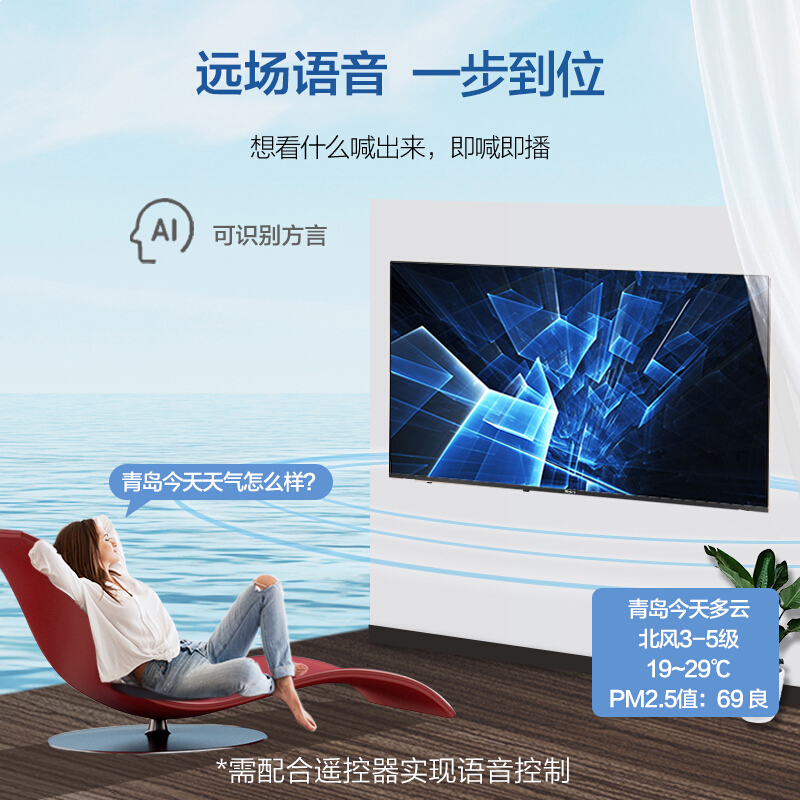 • 海尔65R3 65英寸超薄金属全面屏 4K超高清 8K解码 AI声控智慧屏 平板液晶教育电视2+16G