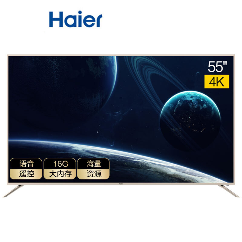 - 海尔 (Haier) LU55D31J 55英寸4K超高清 人工智能 语音遥控 超窄边框LED液晶电视16G大内存 (金色)
