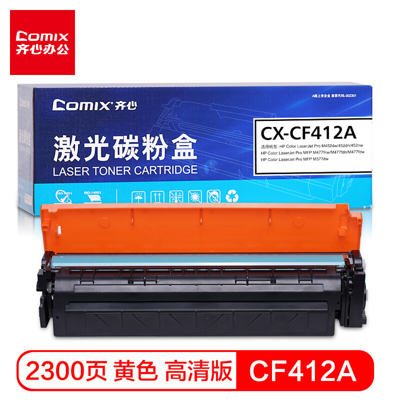 - 齐心 CX-CF412A 硒鼓 适用惠普M477FNW M452DN 452DW 452NW M477FDW M477 M377DW CF410A黄色硒鼓