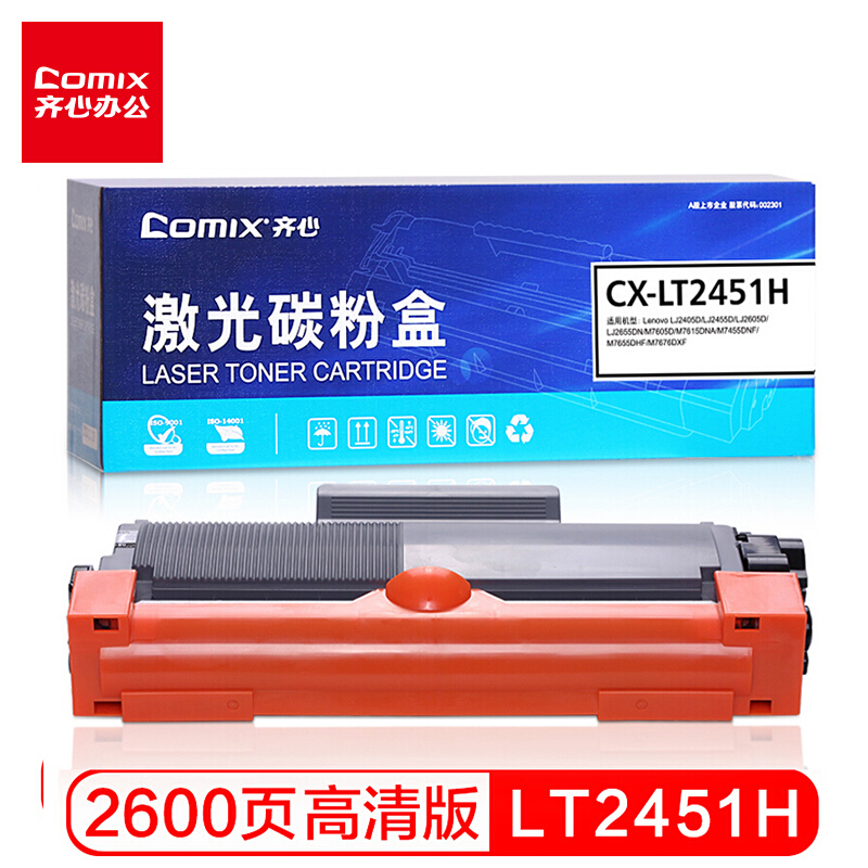 - 齐心 CX-LT2451H 硒鼓 大容量易加粉 适用联想LJ2405D LJ2455D LJ2605D LJ2655DN M7605D 粉盒