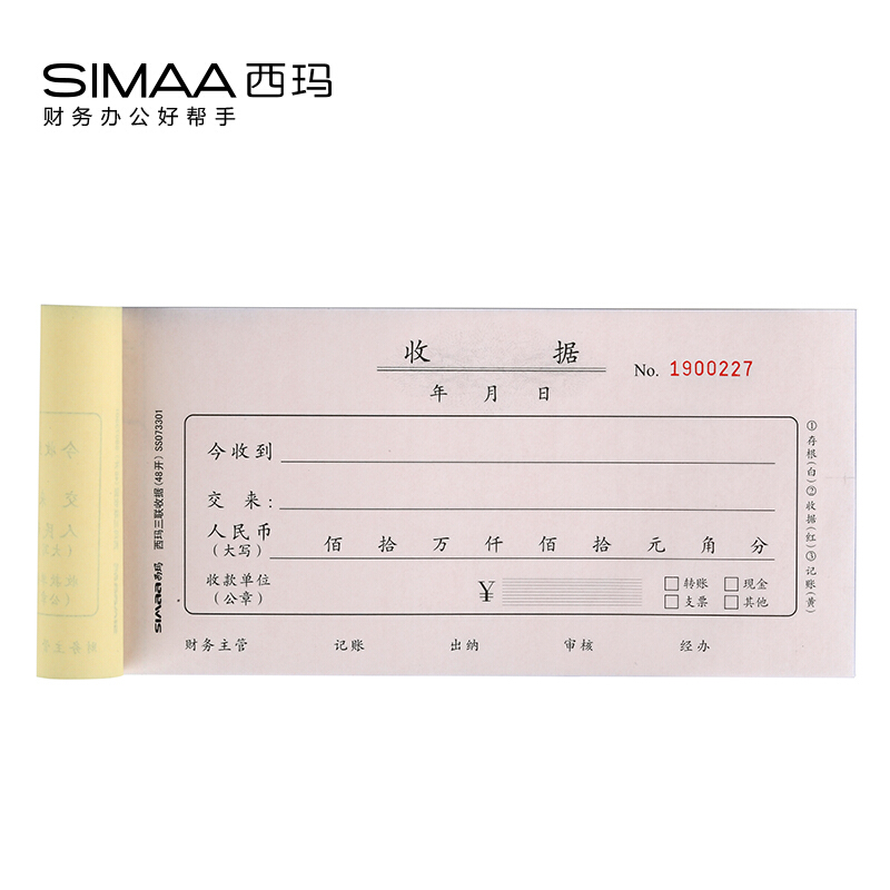 西玛(SIMAA) SS073301 收款收据 无碳复写三联收据(48开) 175*87mm