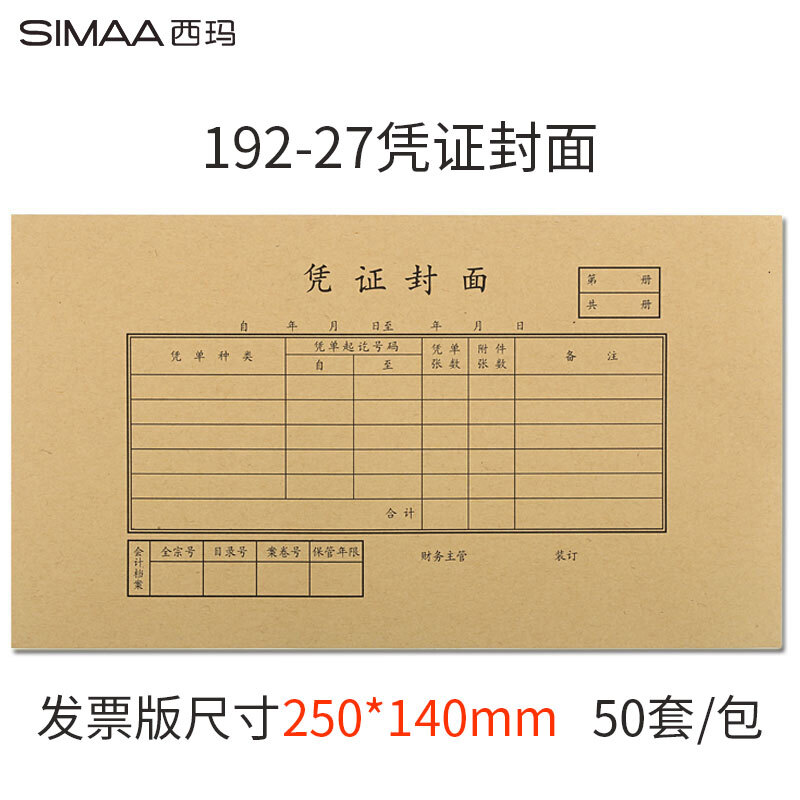 西玛(SIMAA)192-27 记账凭证封面 50套/包 250*140mm 发票增票版尺寸tr101封面 财务会计费用报销单