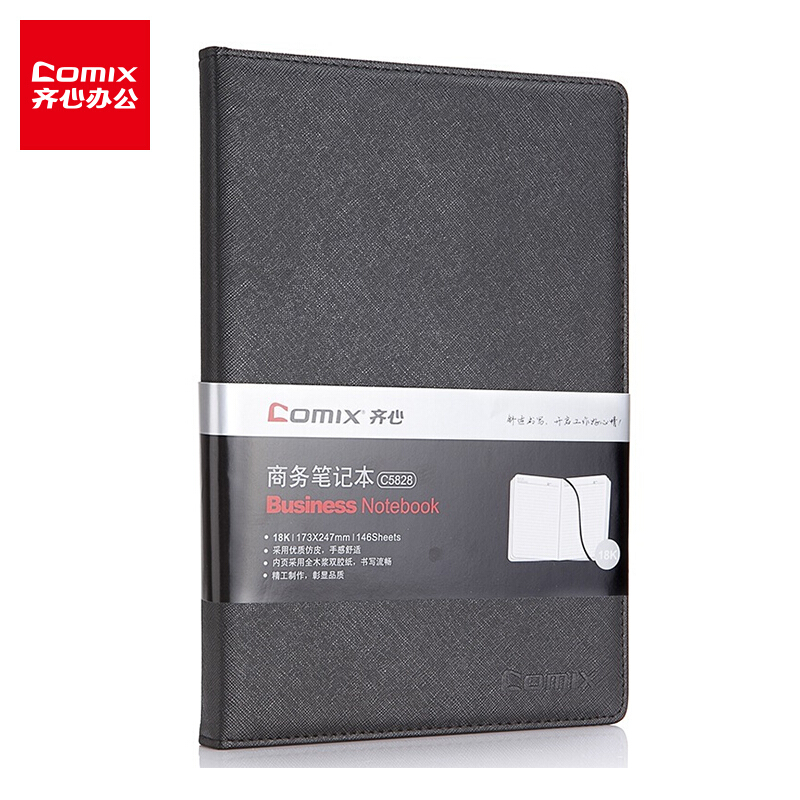 齐心(COMIX) 18K/146张十字纹皮面笔记本子/记事本/日记本 黑色 C5828