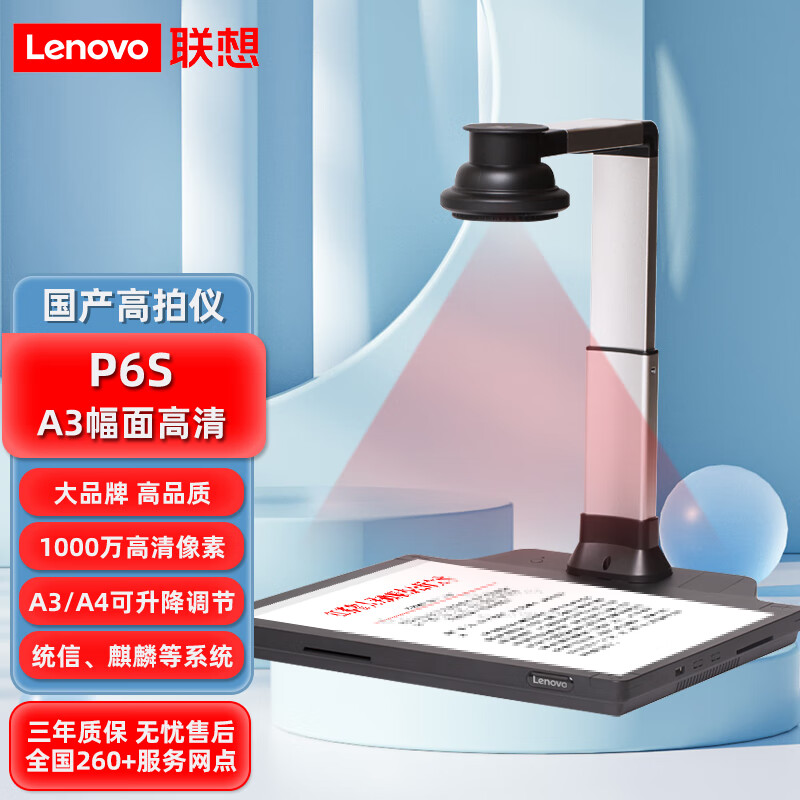 联想(Lenovo)高拍仪 P6s【国产化】1000万像素高清拍摄仪A3A4幅面硬底扫描仪 适配国产系统及Windows系统