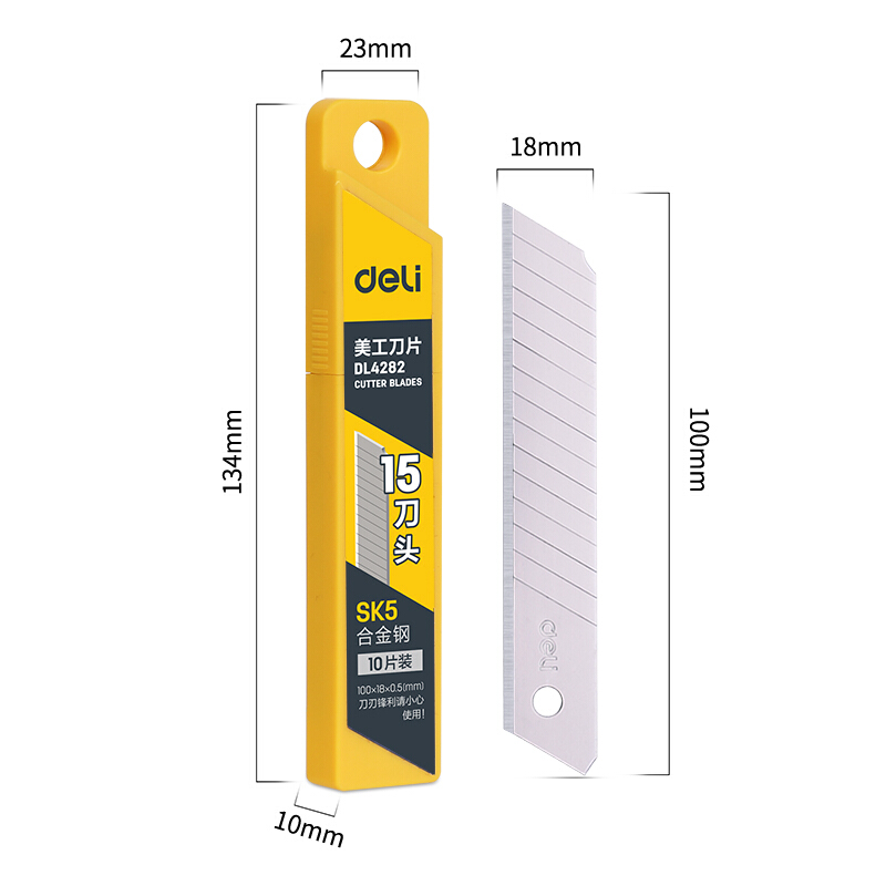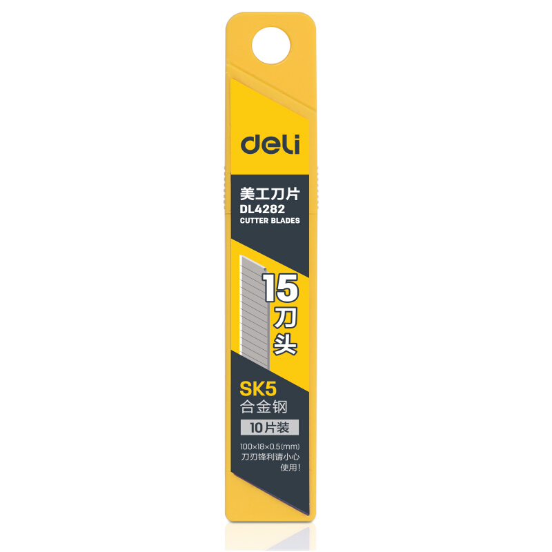 得力(deli)15刀头SK5合金钢美工刀片/裁纸刀片 10片18mm DL4282