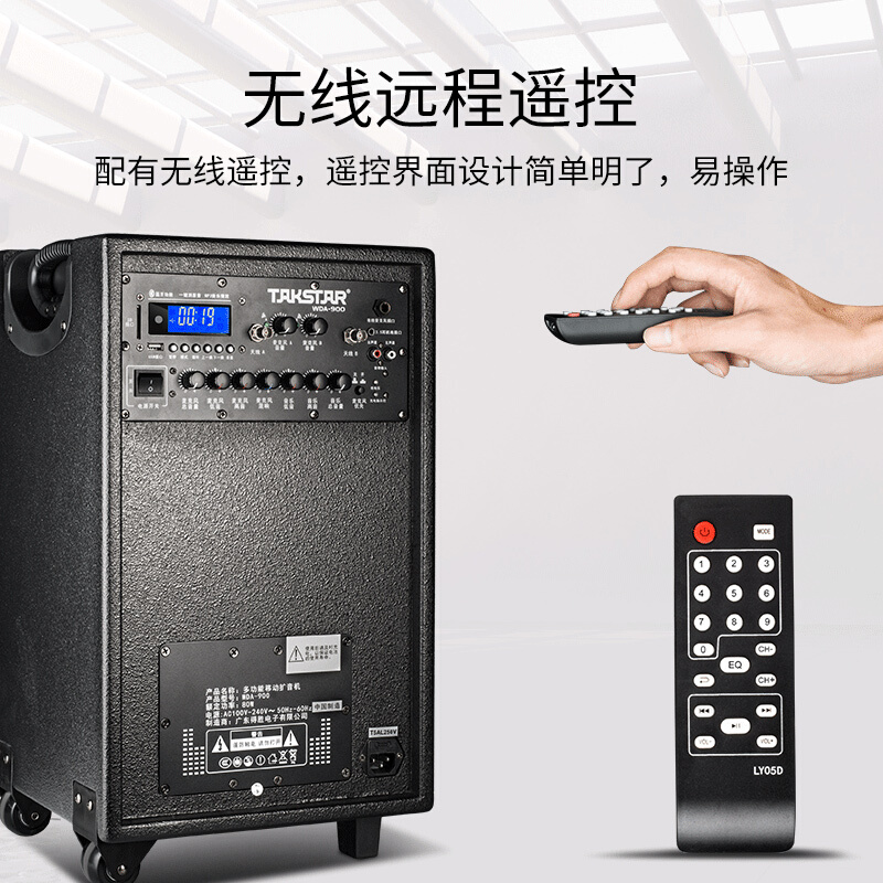 得胜(TAKSTAR)WDA-900 广场舞音响 无线蓝牙拉杆音箱 户外便携式音响 大功率带无线UHF麦克风扩音器