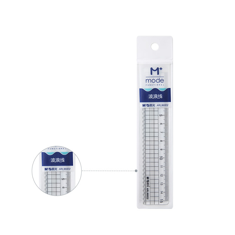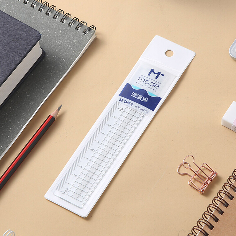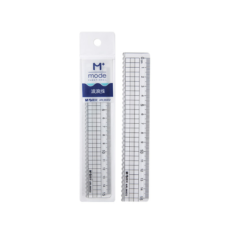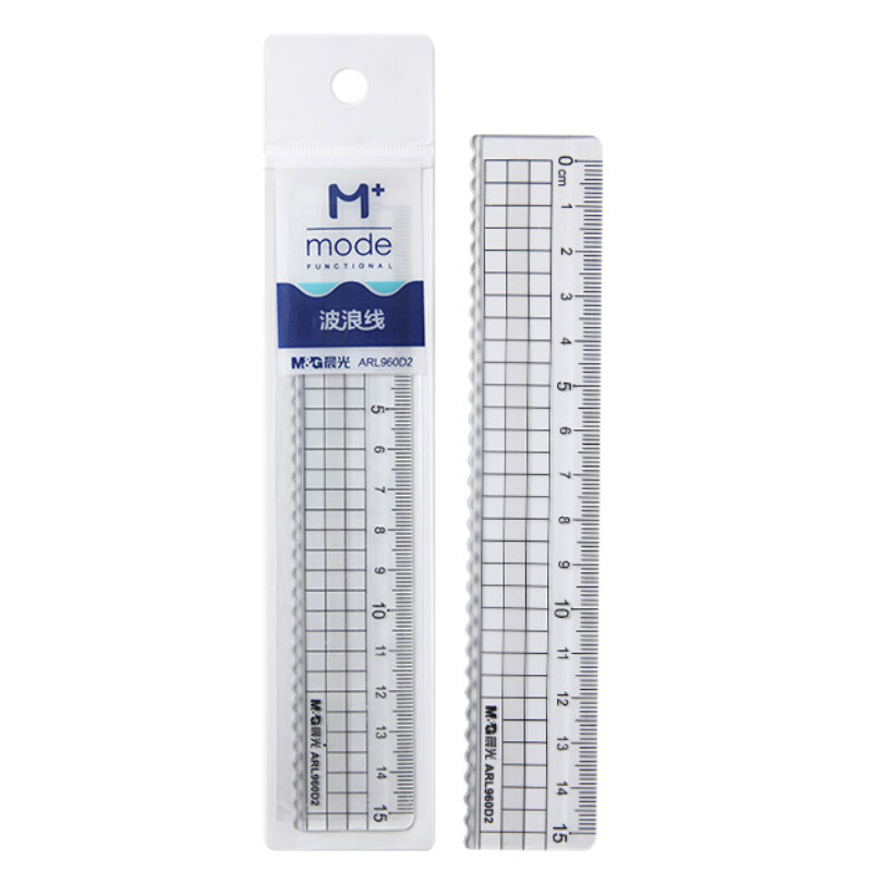 晨光ARL960D2 15cm高透直尺 办公学习绘图制图塑料尺(带波浪线) M+系列尺子 单把装