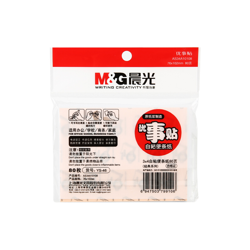 晨光YS-46 白色80页便利贴 粘性便签纸留言贴 76*102mm记事贴优事贴便签本子 单本装