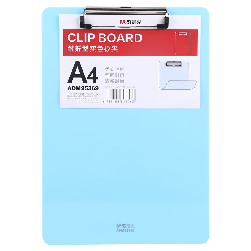 • 晨光ADM95369 A4蓝色耐折型书写板夹