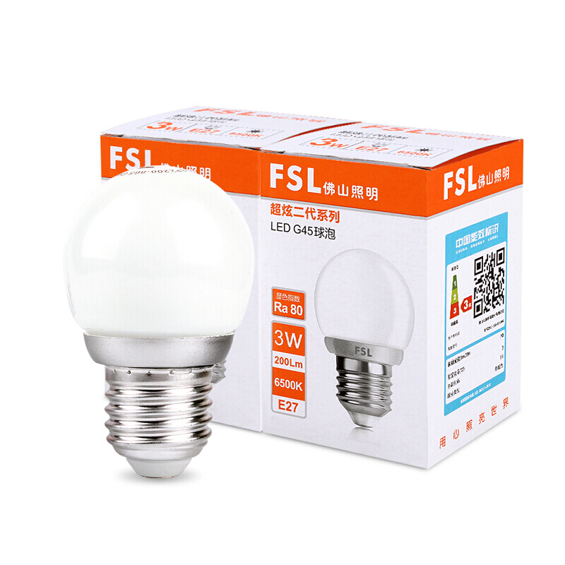 • 佛山照明 LED球泡3W大口E27节能灯泡日光色6500K 炫银 2支装