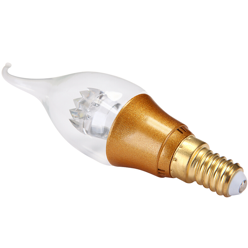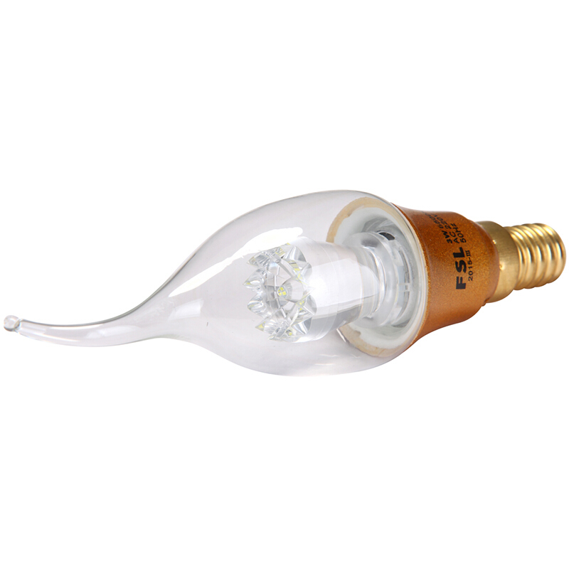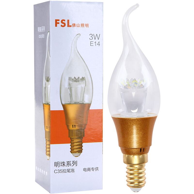 佛山照明 LED蜡尾泡节能灯具E14小螺口拉尾泡日光色6500K 3W 明珠金色