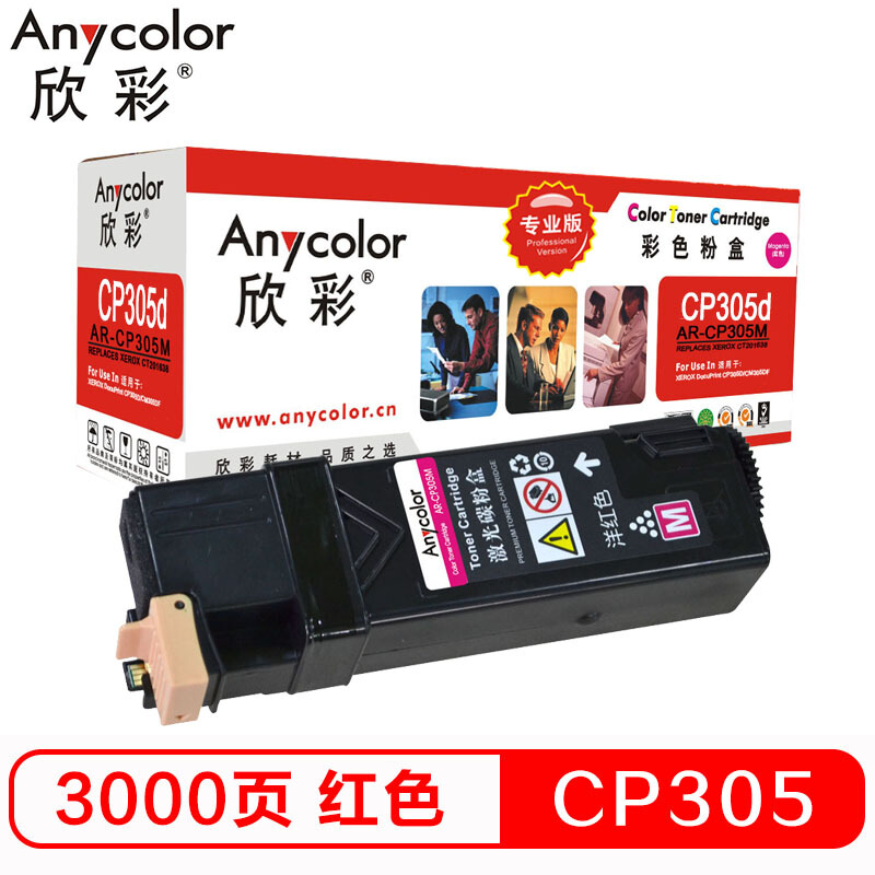 - 欣彩(Anycolor)CP305d粉盒(专业版)AR-CP305M红色 适用施乐 Xerox CT201638 CP305D 墨粉筒 耗材