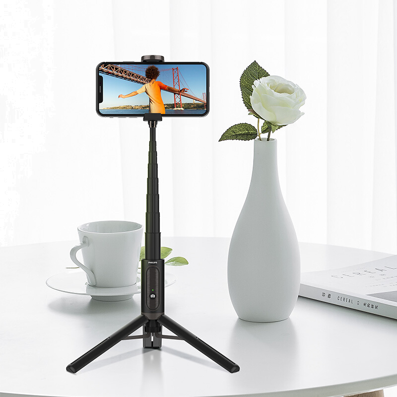 • 飞利浦(PHILIPS)三脚架无线自拍杆 蓝牙遥控 小巧便携 短视频/直播支架 安卓/苹果手机通用 黑色 DLK3618N