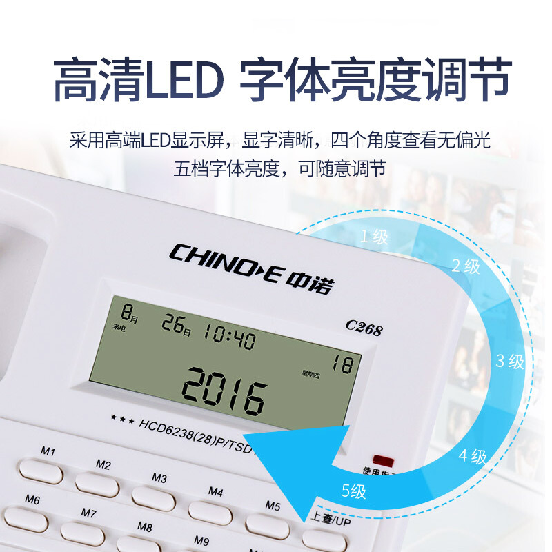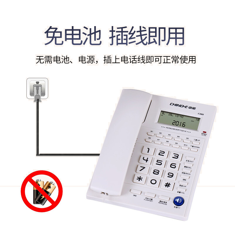 中诺 电话机 座机 固定 电话 有线 来电显示 一键拨号 免电池 双接口 C268白色