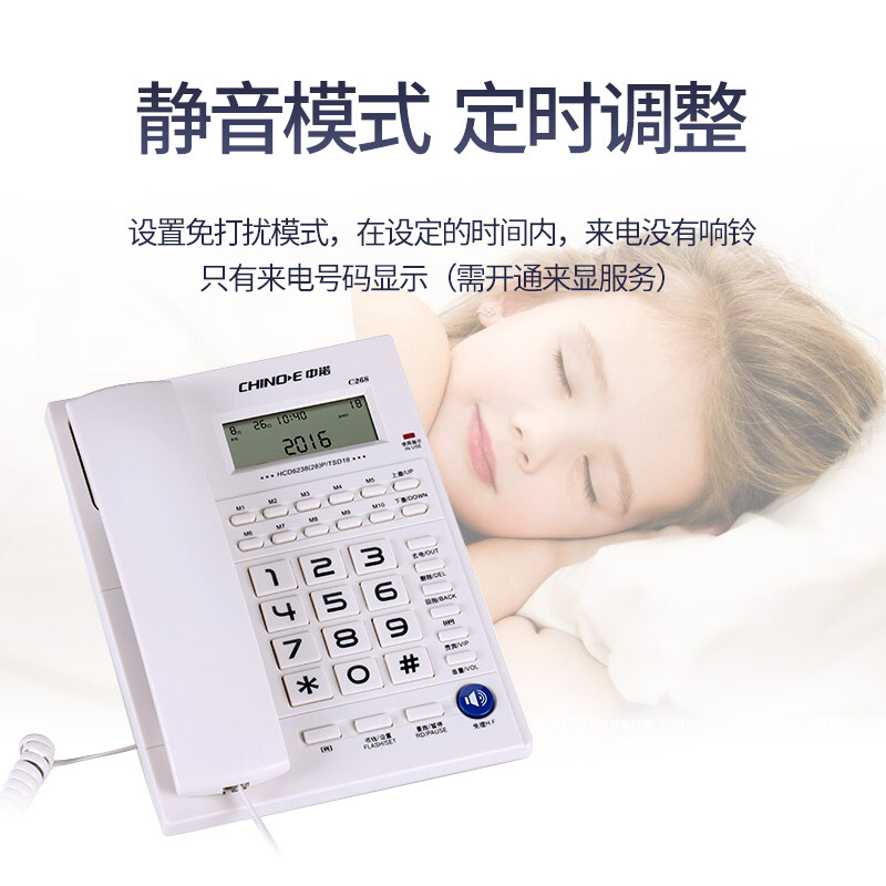 中诺C268 电话机 座机 固定 电话 有线 来电显示 一键拨号 免电池 双接口 白色
