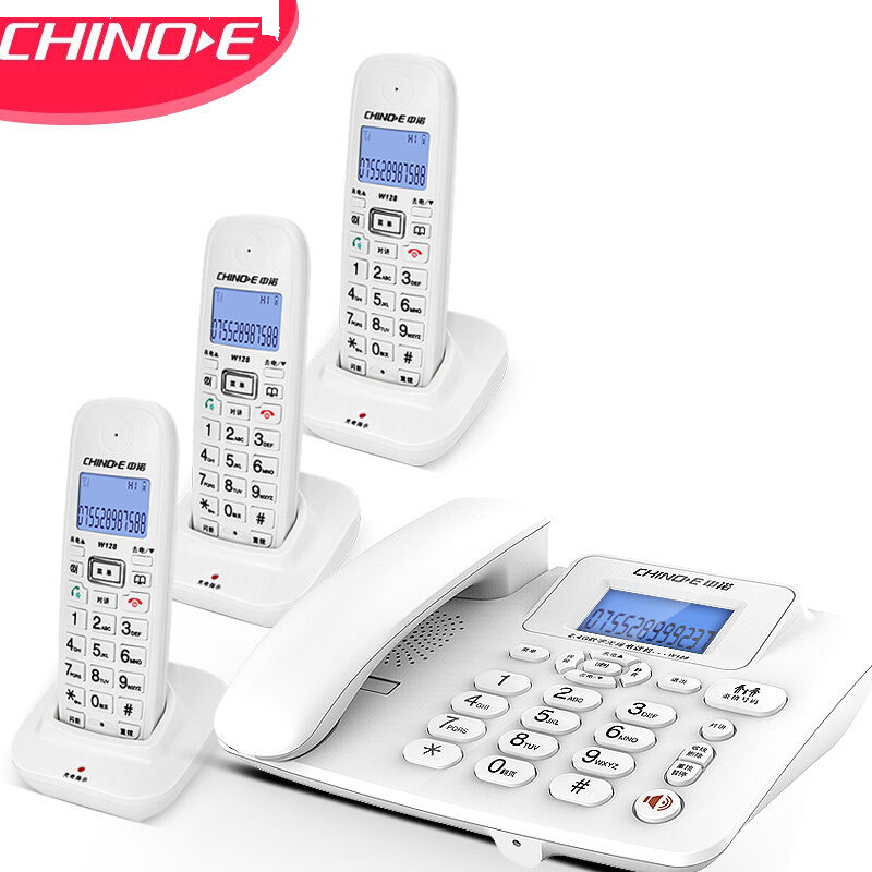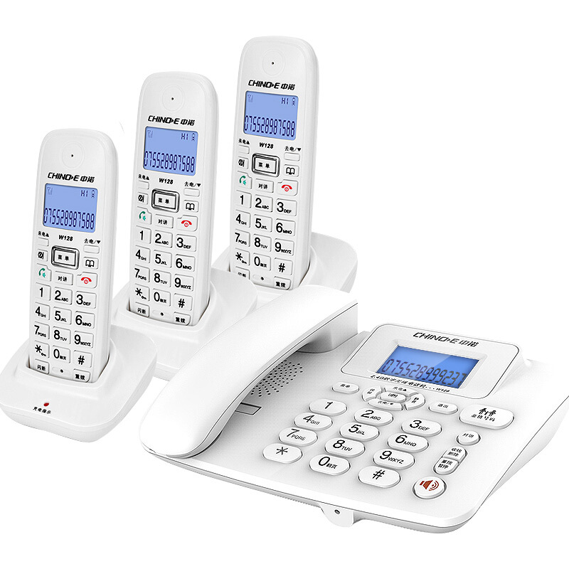 中诺(CHINO-E)无绳电话机 无线座机 子母机内线通话 一键拨号 免提通话 W128一拖三 白色
