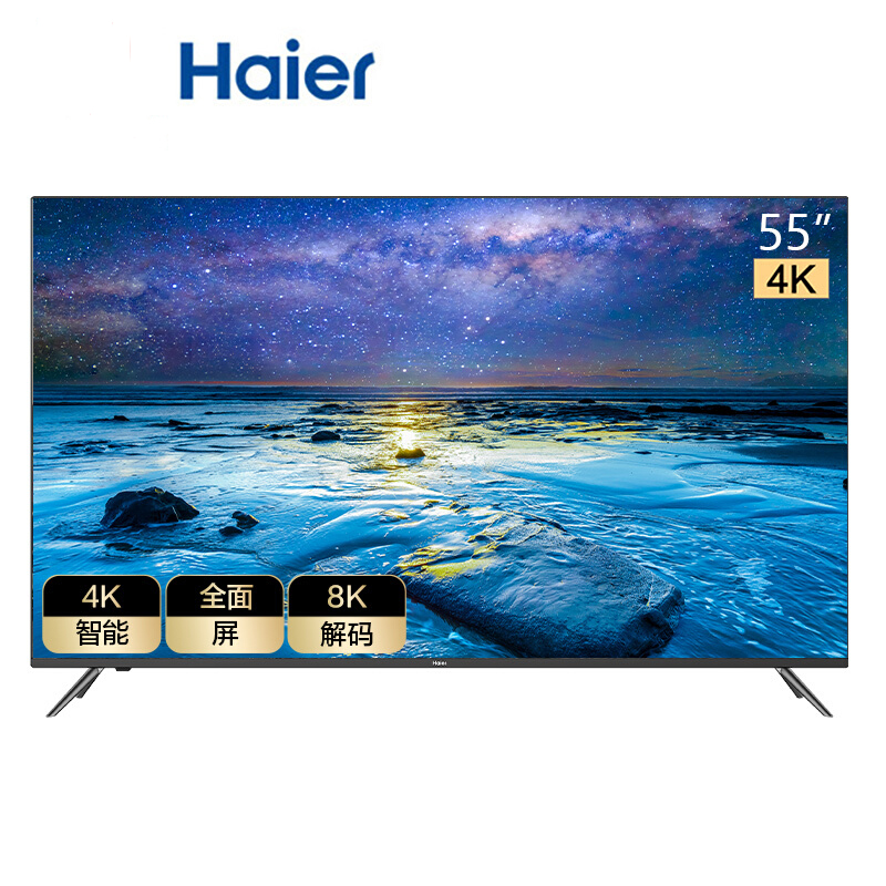 海尔LU55J71 55英寸 超清8K解码 人工智能全面屏 纳米广色域 语音遥控 LED液晶电视2+16G(黑色)