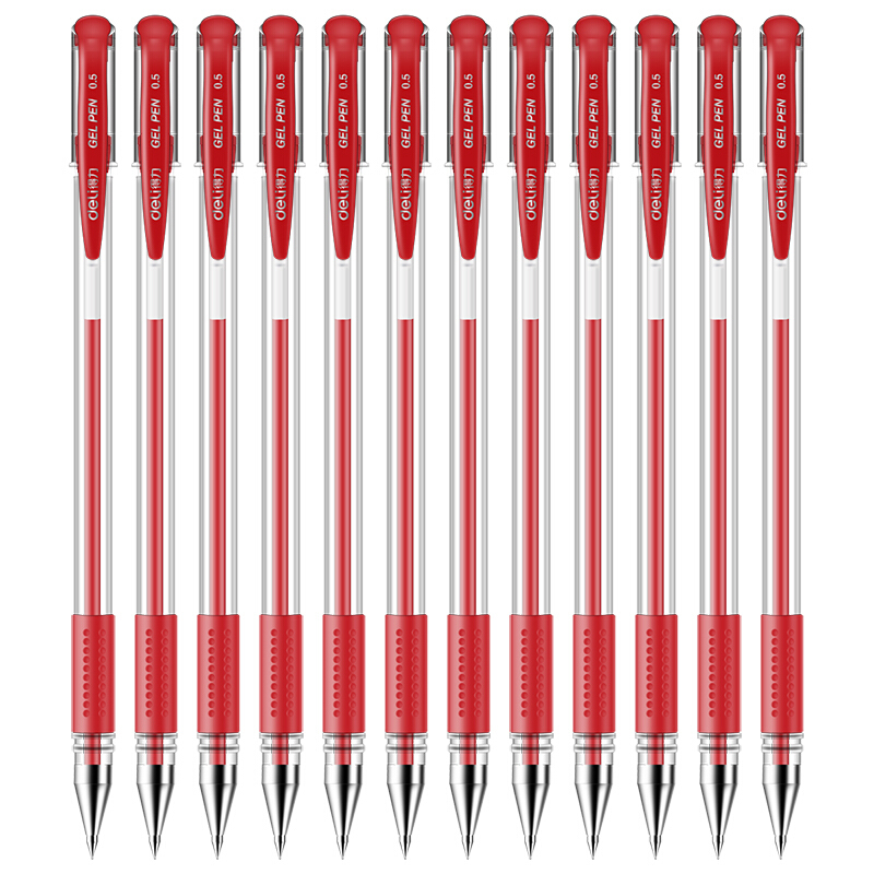 得力(deli)0.5mm经典办公中性笔签字笔 子弹头红色12支/盒