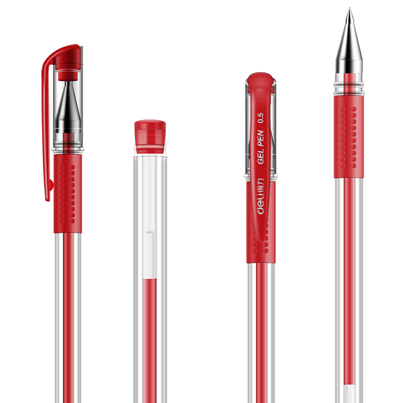 • 得力6600 中性笔签字笔0.5mm经典办公子弹头红色12支/盒