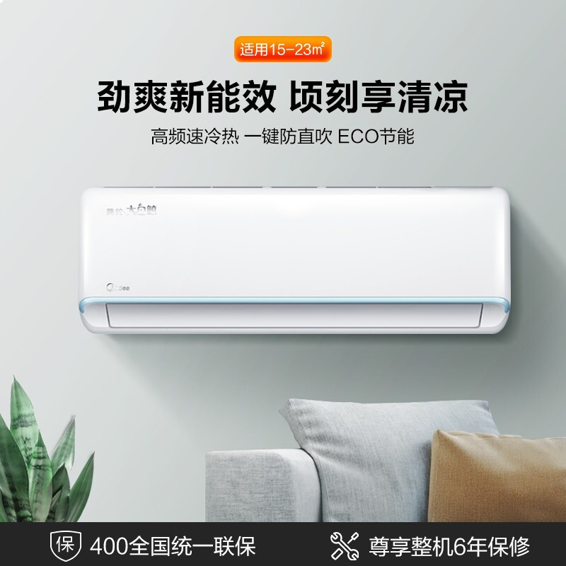 • 美的KFR-35GW/N8JDA3 新能效 大白鲸 变频冷暖 1.5匹壁挂式卧室空调挂机