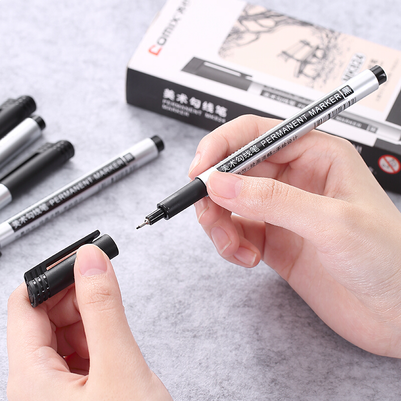 齐心(Comix) 0.5mm黑色专业美术绘画勾线笔签字笔 12支/盒 MK824