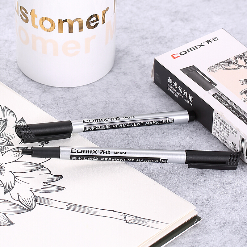 • 齐心MK824 黑色专业美术绘画勾线笔0.5mm签字笔 12支/盒