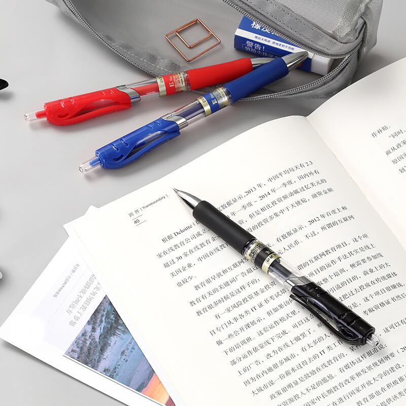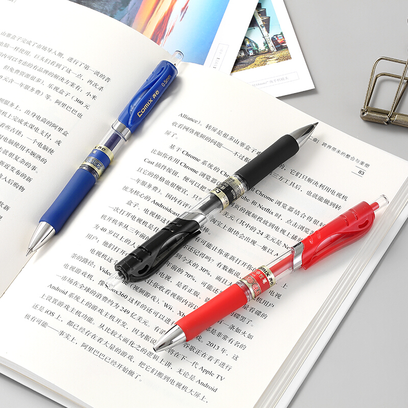 • 齐心EK35 红色子弹头按动中性笔办公0.5mm签字笔水笔 12支/盒
