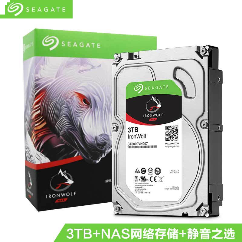 - 希捷(Seagate) NAS硬盘 3TB 64MB 5900转 PMR CMR垂直磁记录 网络存储 SATA 希捷酷狼IronWolf ST3000VN007