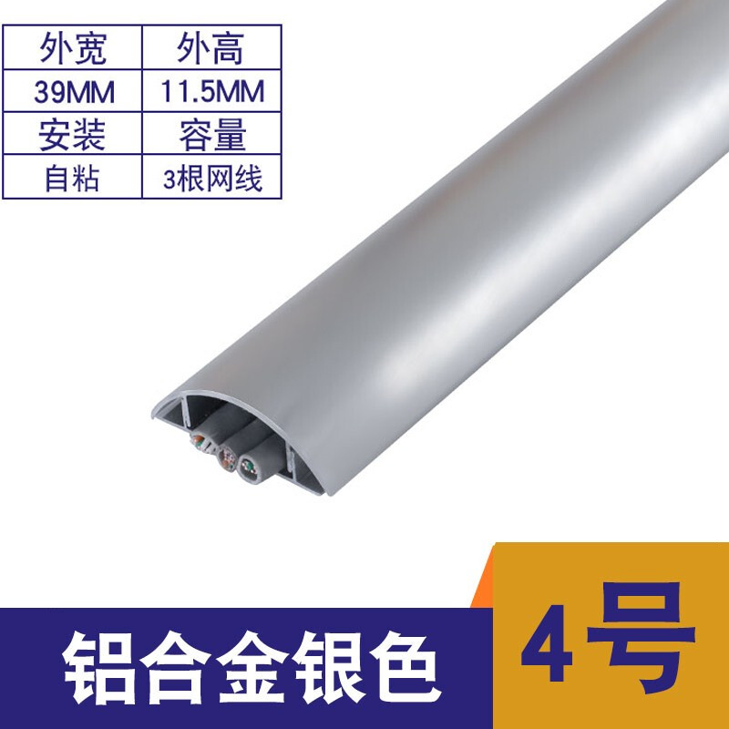 铝合金线槽明装地槽半圆弧形铝金属地线槽明线防踩走线槽免钉器 4号【自带泡沫棉背胶】 一米
